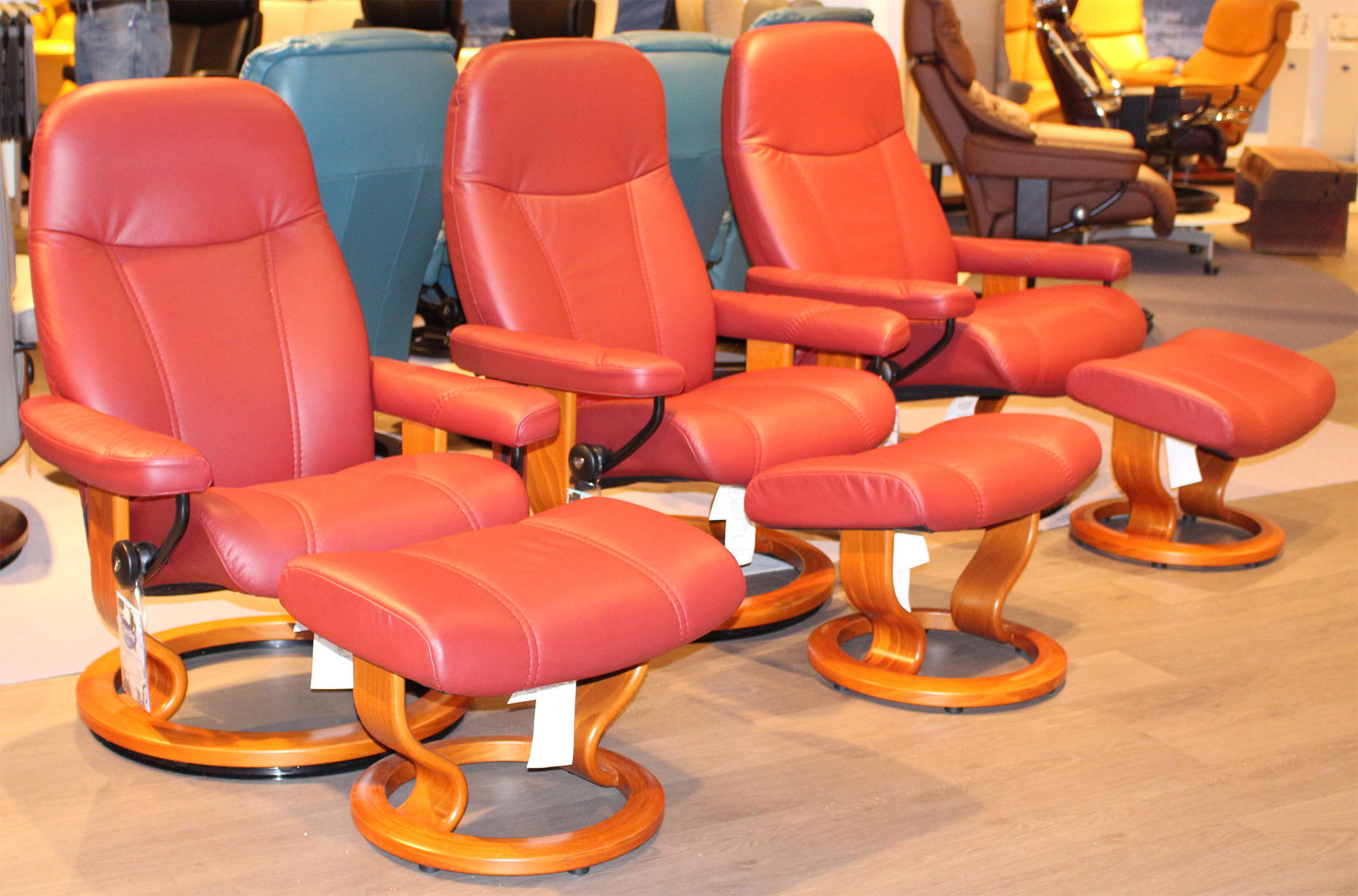 Stressless Bordeaux Burgundy Cherry Beet Red and Brick Red Leather Colors