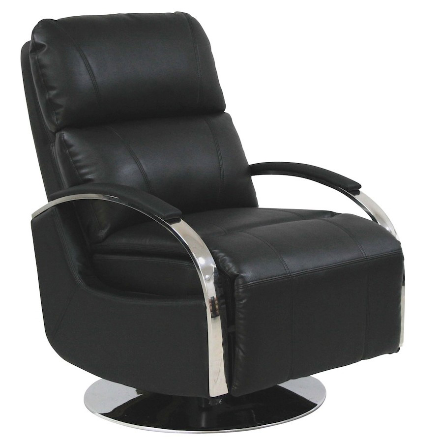 Barcalounger Regal II Leather Swivel Recliner Lounger Chair - Polished chrome arms and swivel base create the foundation for the Regal ii, a sleek swivel recliner featuring a chaise pad for additional comfort. Top quality Leggett and Platt reclining mechanism is easily activated by leaning into chair back; unit requires only 2.5 lbs of pressure to open. Mechanism has plastic delrin bushings for silent, squeak-free operation and is secured to the recliner with metal bolts and t-nuts, for increased stability and durability. Mechanisms bolted to framewith I bolts, 1.8 Resilency Foam, padding on backs and sides of all chairs. Hardwood and Plywood Frames with Mortise and tenion glued joints. 30 Superior individual pocketed coils in each seat cushion , fully enclosed in fabric, the foam is topped with blended down feathers. High resilence seat foam for superior durability and comfort. Medium seat density. Extremely durable frames. Colors: |