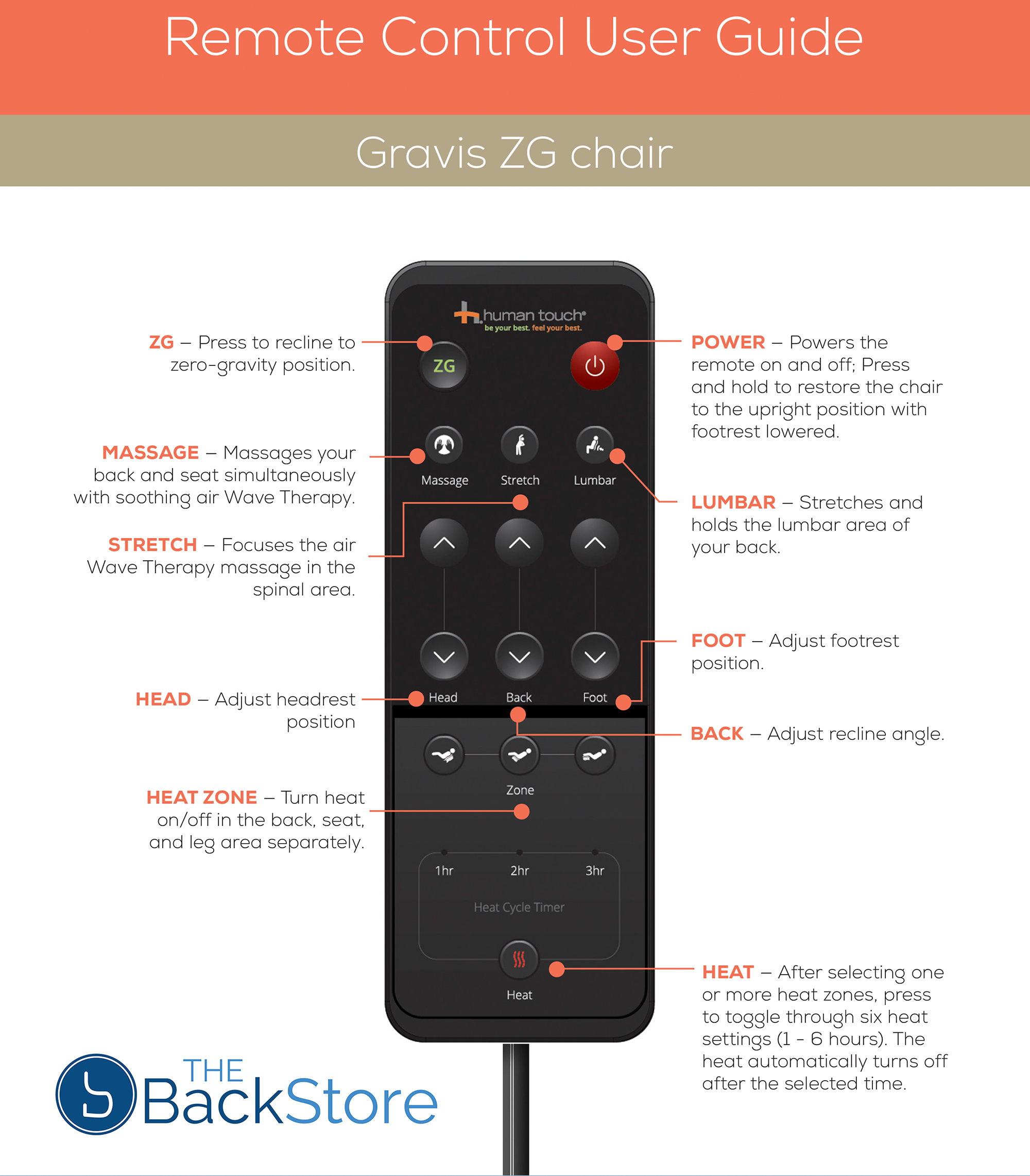 For the wellness-seeker who wants it all, meet the Human Touch® Gravis ZG Chair. Gravis combines the therapeutic benefits of zero-gravity seating with air massage technology, multi-zone heat and powered positioning for every part of the chair, including the headrest. Control the chair using the included remote, or download the Gravis ZG app and access even more amazing features! With crisp, clean lines and innovative design, Gravis delivers both soothing neutral posture pain relief and exceptional control of your seating comfort. Five Year Limited Human Touch Warranty.