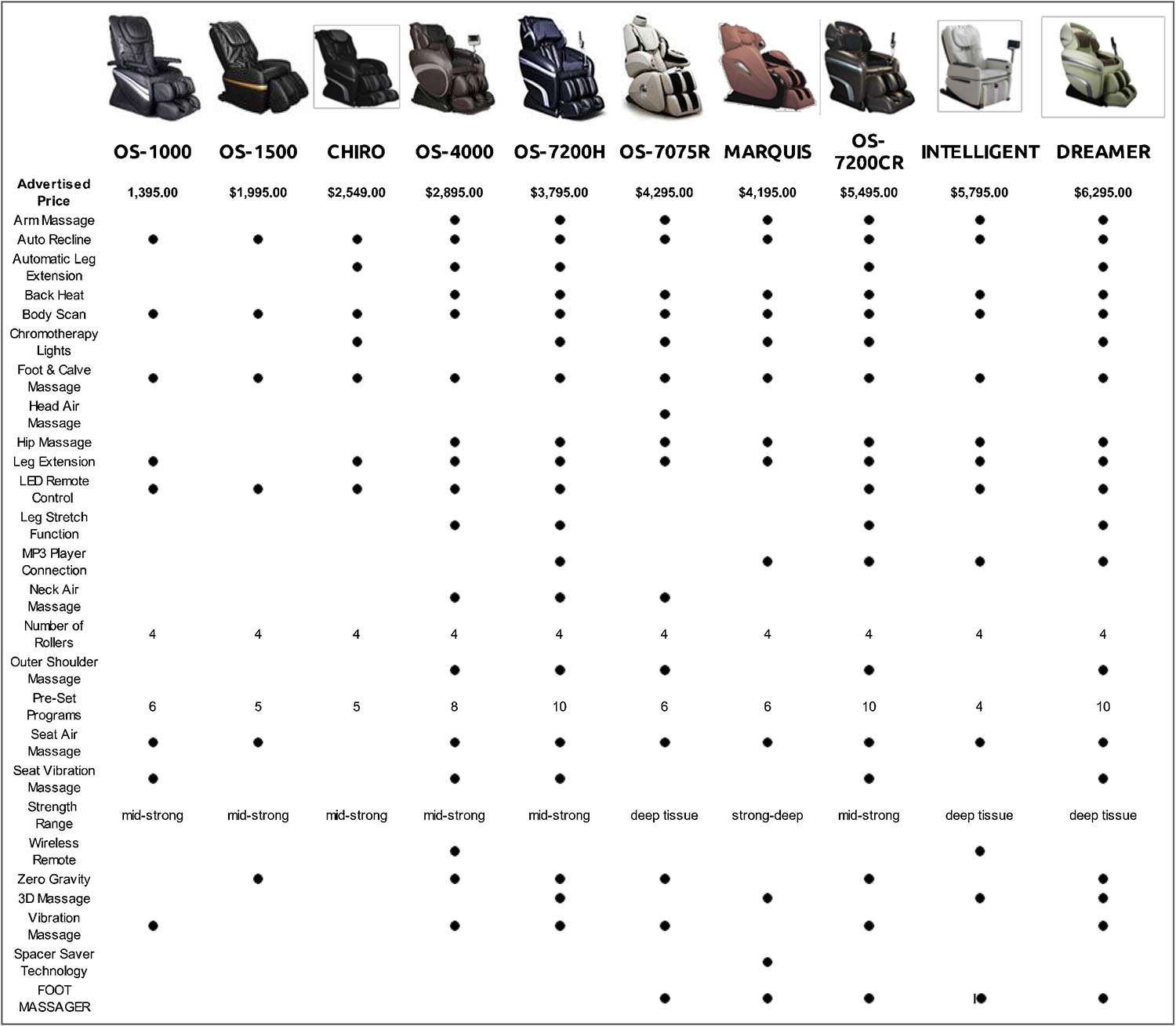 The Osaki Pro Maxim offer 12 unique pre-programed massages. General - Combination of all