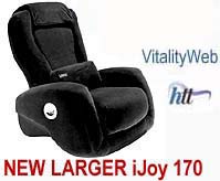 30% LARGER iJOY-170 Massage Chair / Recliner with Human Touch Technology - Hand Held Remote Control. Brushed Polyester Fabric and Manual hydraulic recline mechanism. Basic Ground shipping is INCLUDED for new ijoy chair orders shipped within the continental USA. Only available in Black.